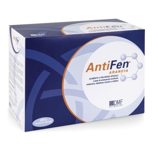 Alimento a base di LNAA (aminoacidi neutri a lunga catena), metionina, triptofano, tirosina e istidina, destinato a fini medici speciali per soggetti affetti da fenilchetonuria secondaria a deficit di fenilalanina-idrossilasi. Il prodotto deve essere utilizzato solo in soggetti con diagnosi accertata di PKU secondo valutazione medica. AntiFen Arancia contiene una miscela di aminoacidi che riduce gli effetti tossici della Fenilalanina a livello cerebrale. Per integrare la dieta in soggetti con cattiva compliance dietetica.