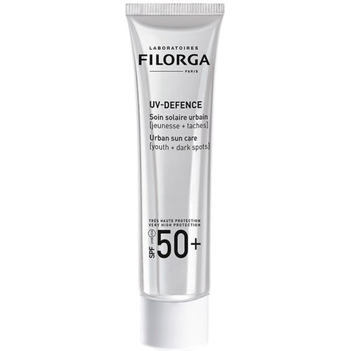 FILORGA UV-Defence SPF 50+ Trattamento Solare Urbano [Giovinezza + Antimacchie] Altissima protezione - Potenti filtri solari associati alla vitamina E antiossidante proteggono la pelle dagli UV e dai radicali liberi.